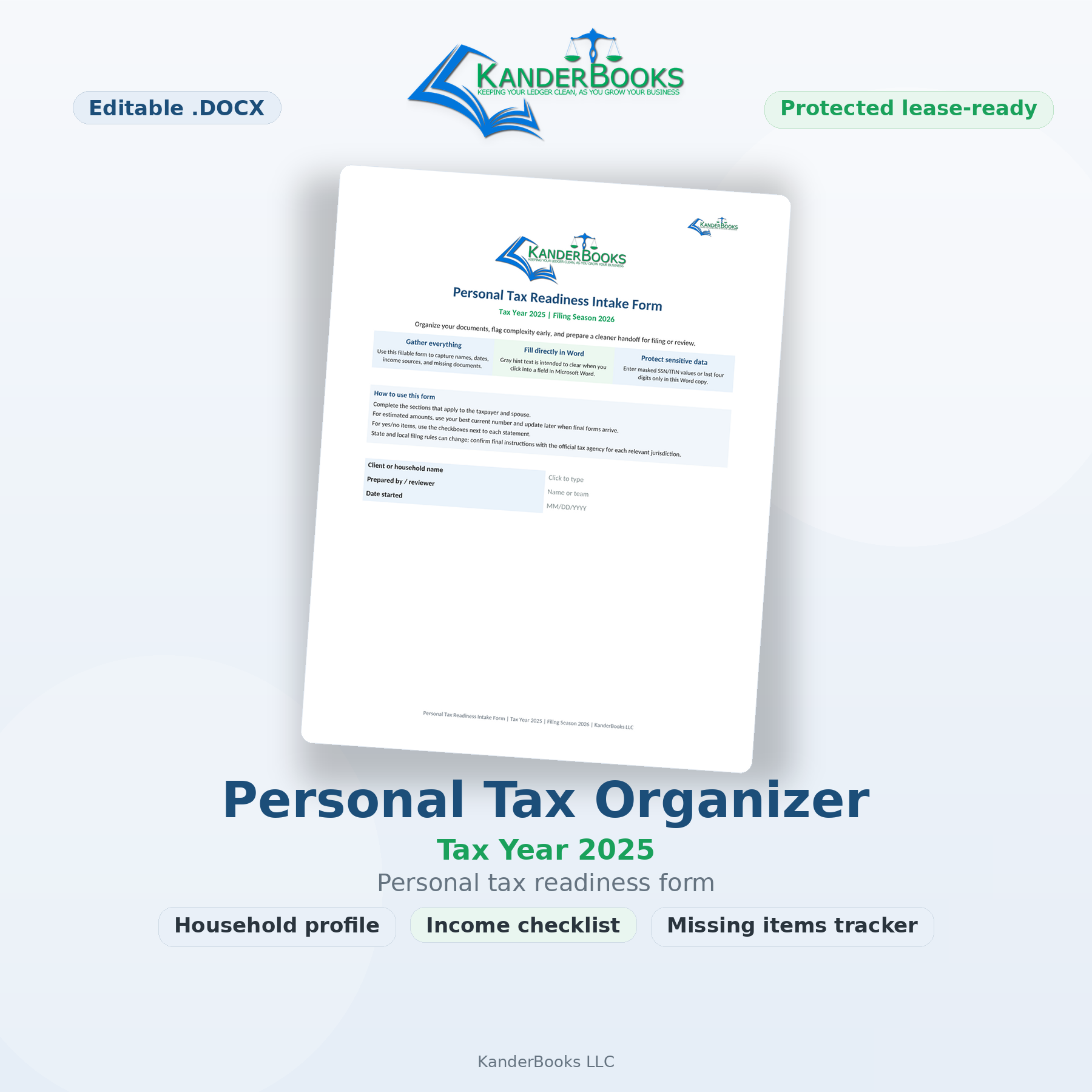 KanderBooks Personal Tax Organizer – Tax Year 2025
